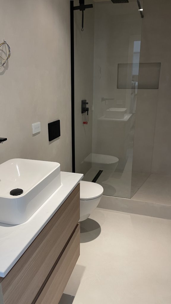 łazienka wykończona mikrocementem Perfectmikrocement Perfect kolor PN-011mikrocement Perfect kolor PN-011mikrocement Perfect kolor PN-011mikrocement Perfect z przepaleniamimikrocement Perfect kolor podstawowy z przepaleniamimikrocement Perfect ścianaMikrocement, Efekt betonu, Beton architektonicznyZastosowanie mikrocementu na ścianach.Mikrocement gotowy do użycia zastosowany na schodach.Mikrocement aplikacja na paneleMikrocement Perfect nałożony na stare płytki ceramiczne